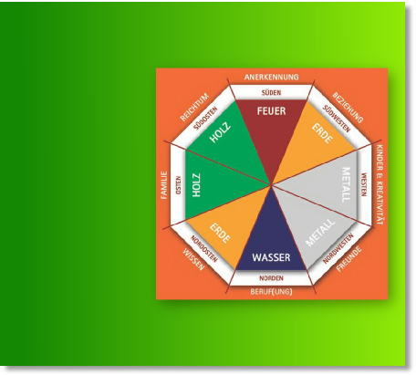 Ähnlich wie ein Lichtstrahl alle Farben des Farbsprektrums in sich trägt, werden die unterschiedlichen Qualitäten des Qi im Bezug zu einem Raumteil gesehen.